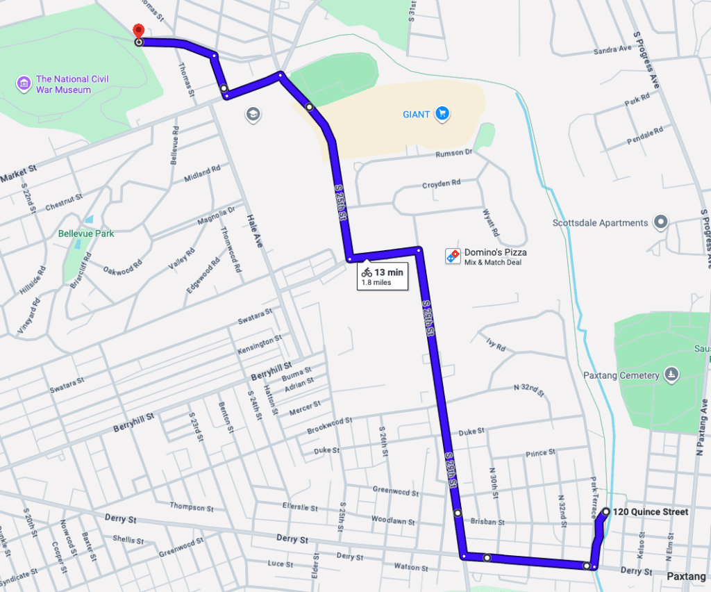 Beginning January 6, 2026, construction will take place along a section of the Paxtang Parkway Trail between the Market St Gate and the Derry Street Gate. The construction zone starts at the Market St Gate and runs for 0.4 mi. The remainder of the trail will be open for use.